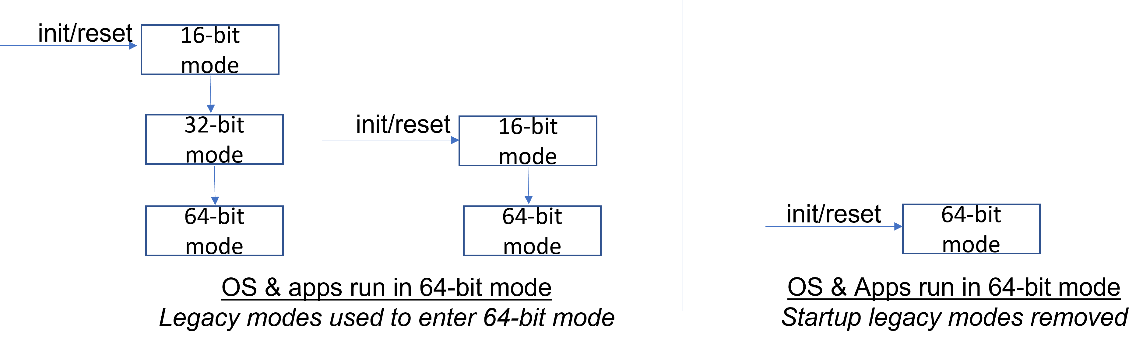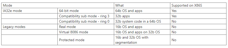 Consider the modes that x86S would have eliminated: real mode, virtual 8086 mode, and 16-bit protected mode. Unless you’ve delved into extensive assembly references like The Art of 64-bit Assembly, you may never have encountered these relics. And unless you’re running 32-bit operating systems on 64-bit hardware for some unusual reason, they represent nothing but wasted transistors.